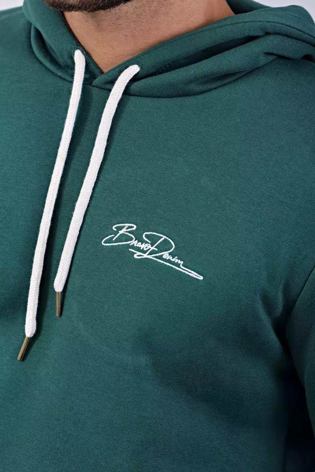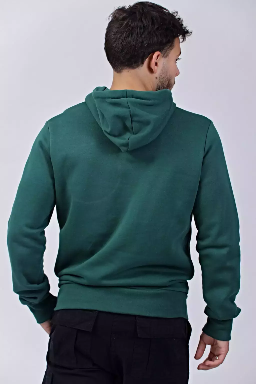 El diseño de la prenda cuenta con puños y cintura de ribb al tono, capucha forrada y un cordón de ajuste redondo con puntera metálica. Además, incorpora un práctico bolsillo canguro y un logo bordado en la parte delantera superior izquierda, agregando un toque de distinción.