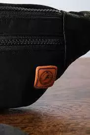 Riñonera negra con doble cierre con logo en reliebe.