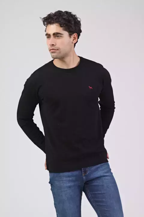 SWEATER CUELLO REDONDO DE ALGODON CON LYCRA CON LOGO BORDADO.